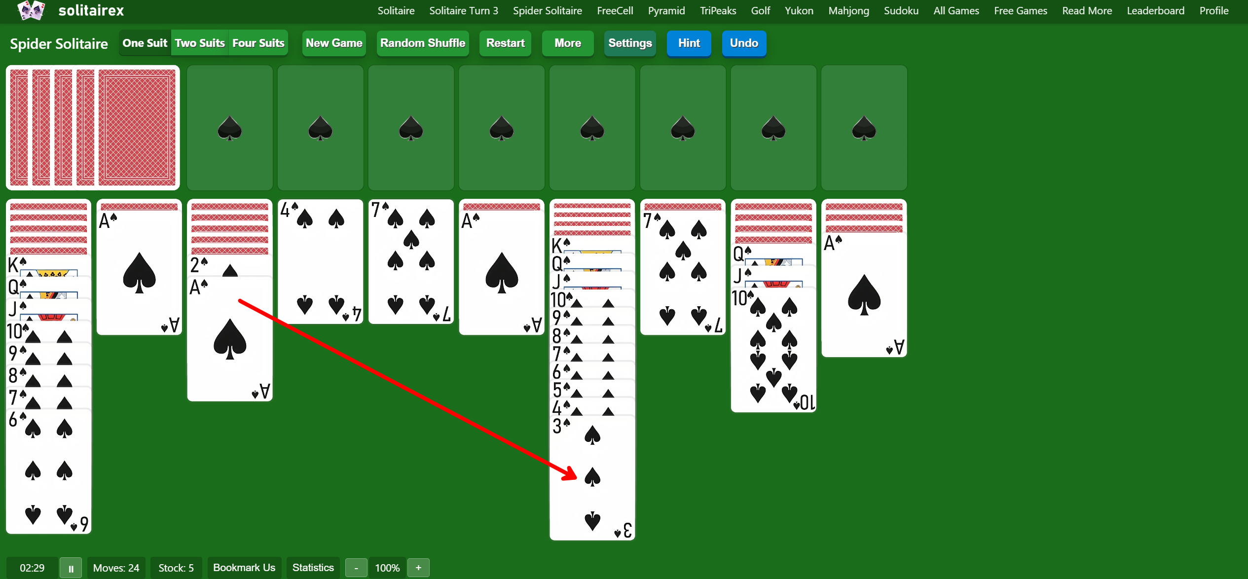 - If the game deals multiple suits, try focusing on completing at least one suit run as soon as you can, since removing a full run opens more space for organizing other suits.